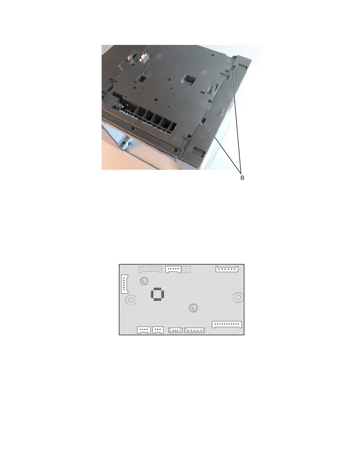 3 Disconnect all the cables (J3, J5, J11, J10, J9, J8, J7 and J1) from the controller PCBA, then remove the two screws