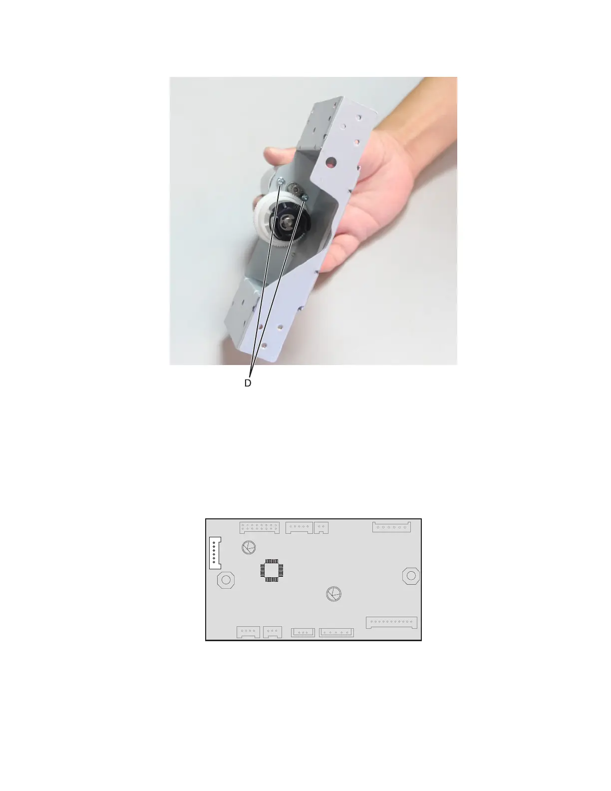 5 Lift the motor cover, and remove the two screws (D) using a #1 Phillips screwdriver.