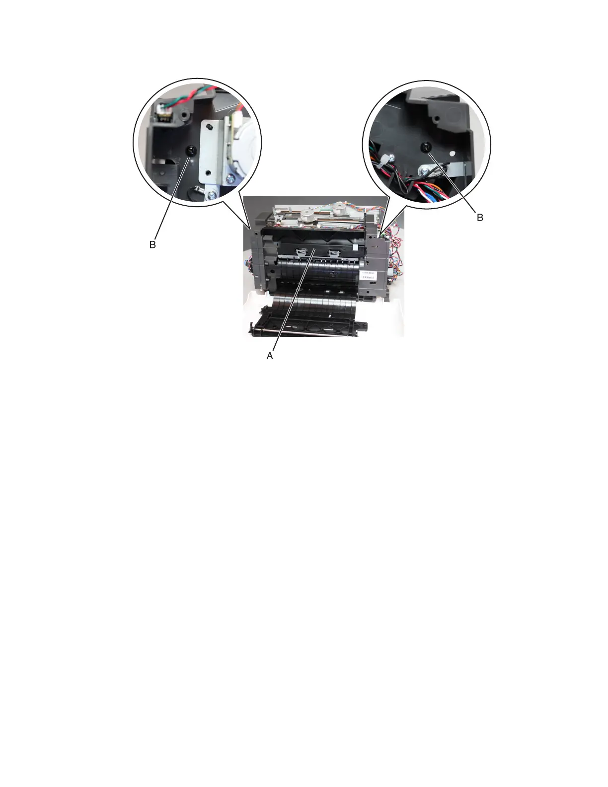 4 Remove the two screws (B) from the cover (A).