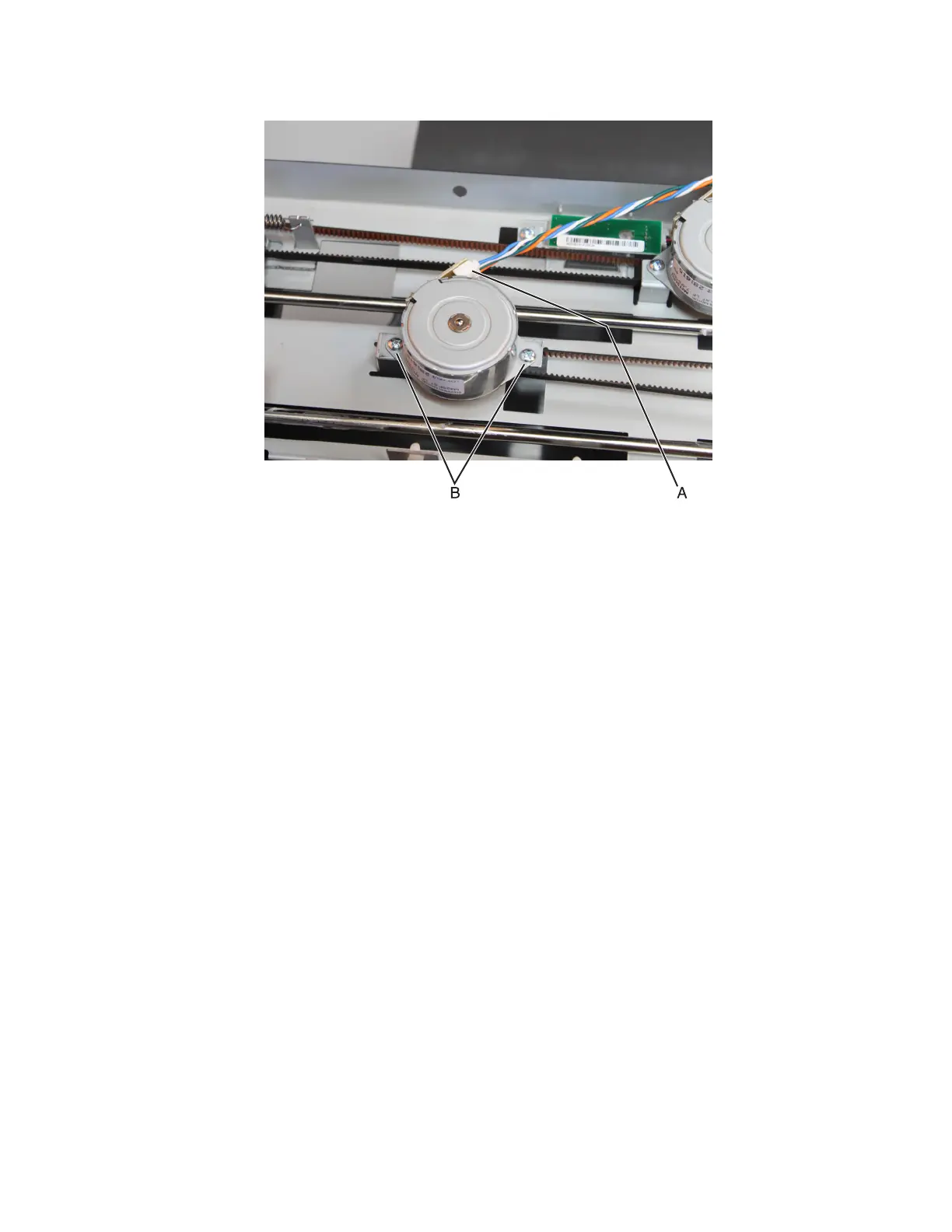 4 Remove the tamper motor assembly engaged to the belt. See “Tamper motor (right) removal” on page 608 or