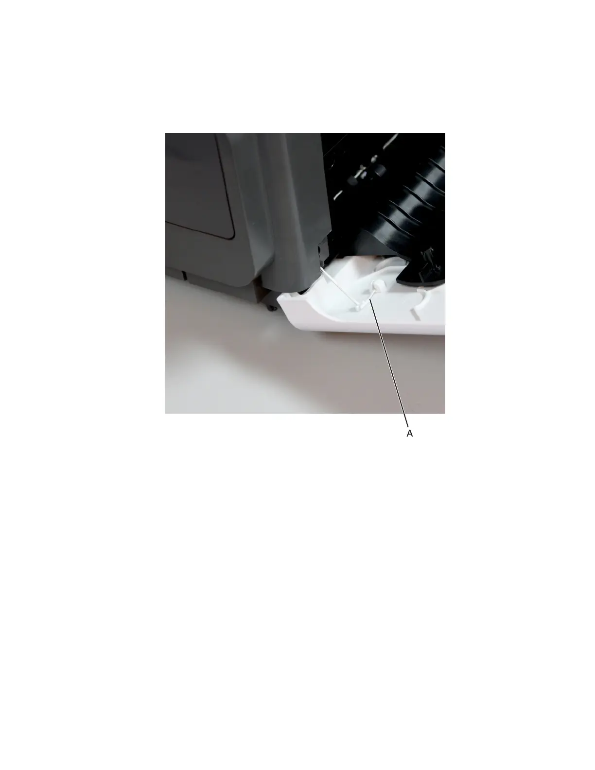 Note: Fasten the string end (B) to the rear side to prevent it from recoiling into the interior of the finisher.
