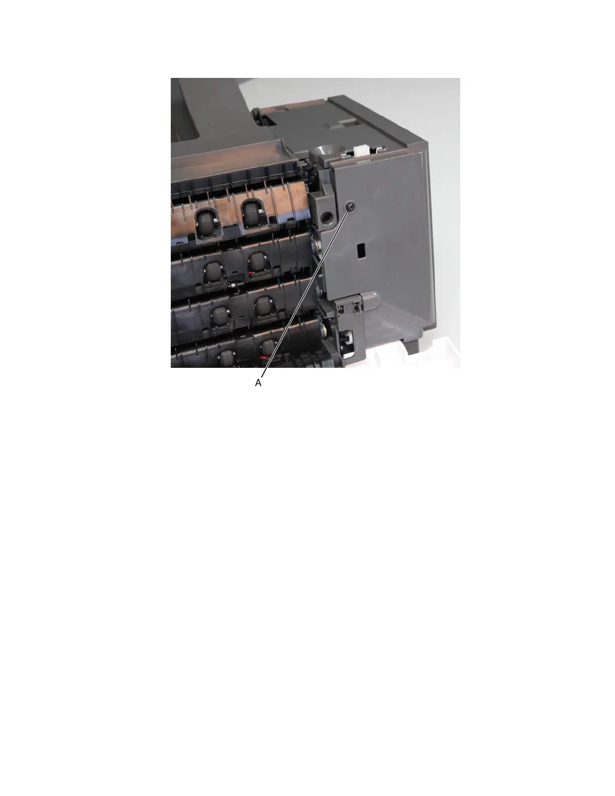 3 Remove the screw from the mailbox (A), then remove the left cover.