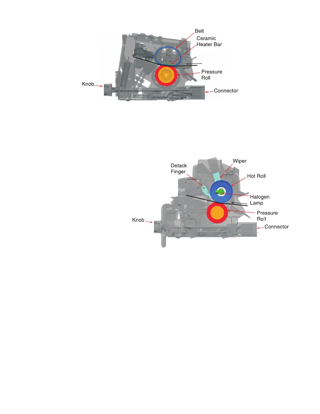 The pressure roll is used to apply pressure to the media surface for fusing. Pressure is applied to the media between
