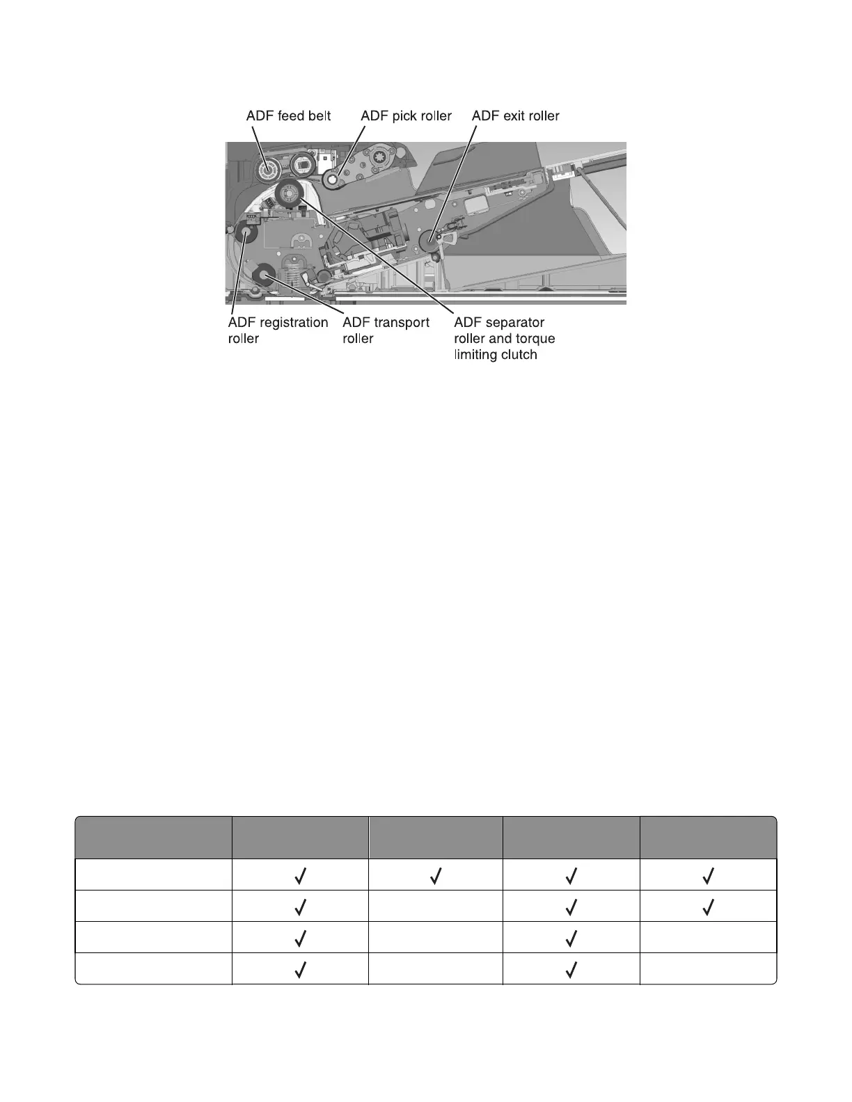 • ADF separator roller and torque limiting clutch—This roller and clutch are used to ensure that only a single sheet