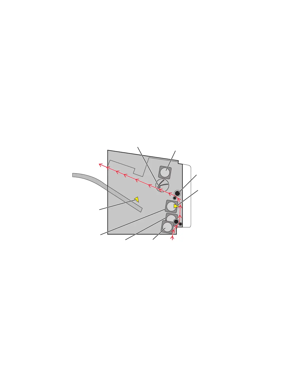 The main motor drives the rollers which move the media along the paper path. The sensor (pass through) detects if