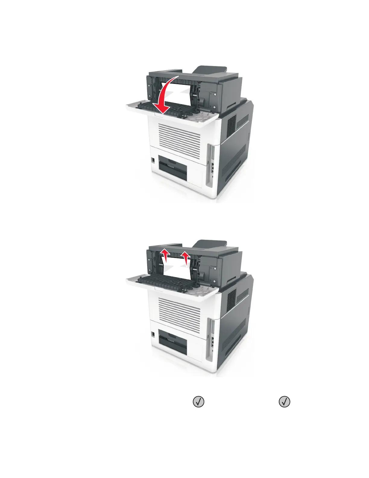 4 To clear the message and continue printing, select Next > > Clear the jam, press OK > .