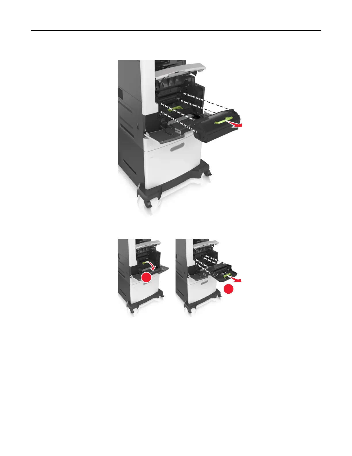 3 Lift the green handle, and then pull out the imaging unit from the printer.