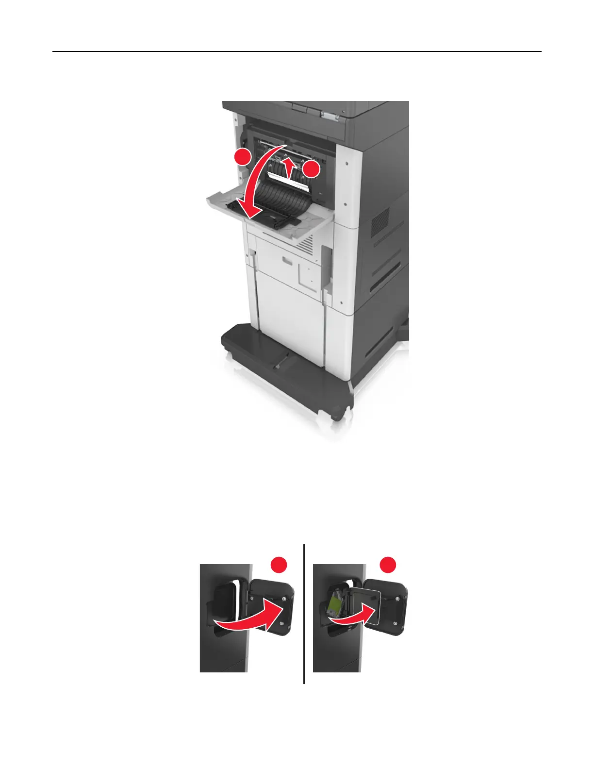 2 Open the staple finisher rear door, and then remove the jammed paper.