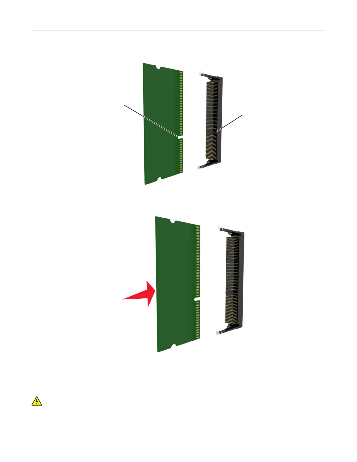 3 Align the notch (1) on the memory card with the ridge (2) on the connector.