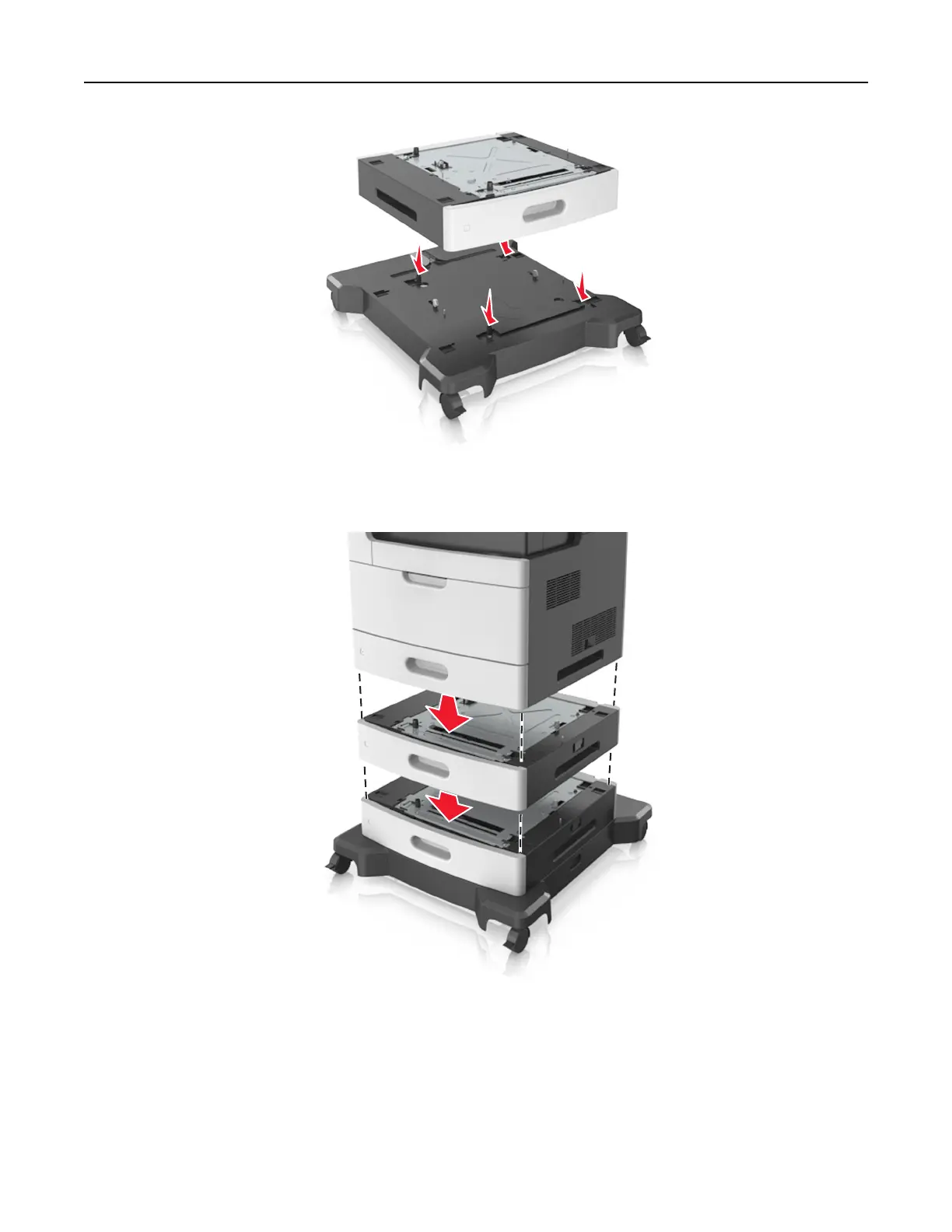 8 Align the printer with the tray, and then slowly lower the printer into place.