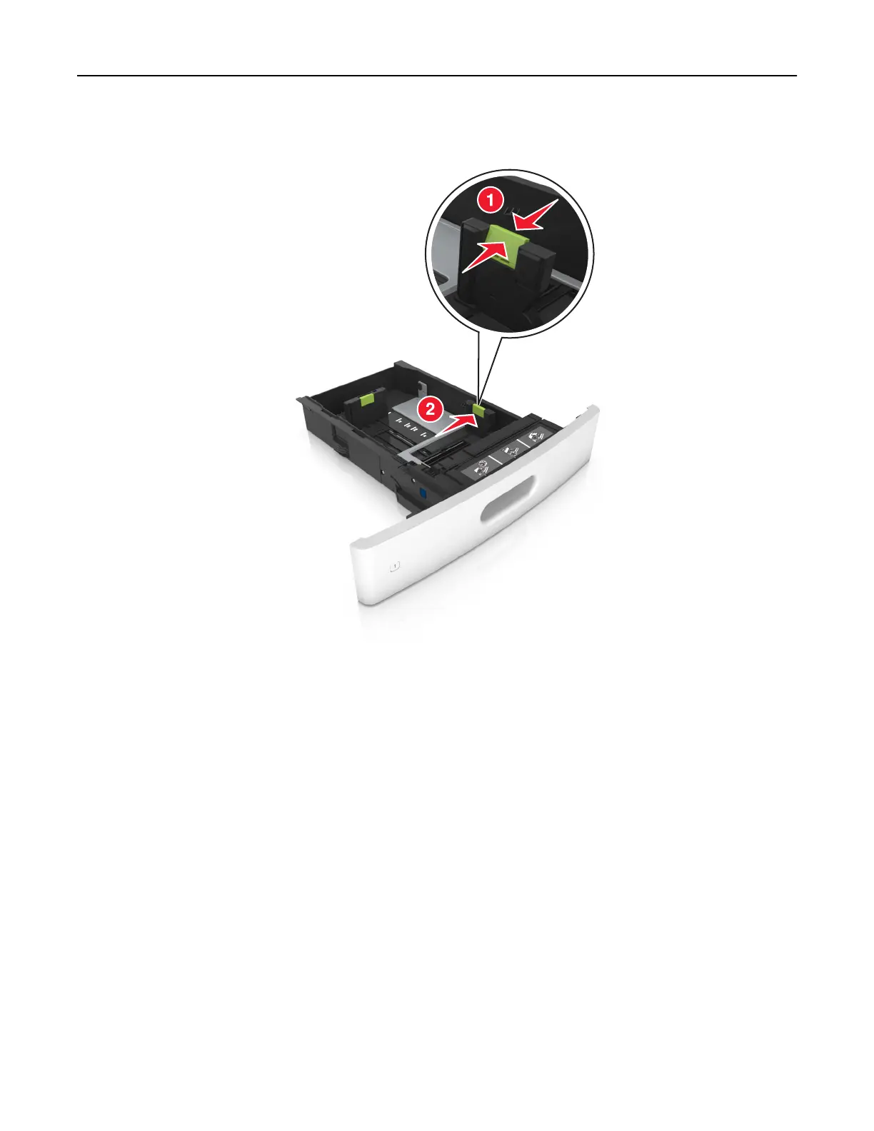2 Squeeze and slide the width guide to the correct position for the size of the paper being loaded until it clicks