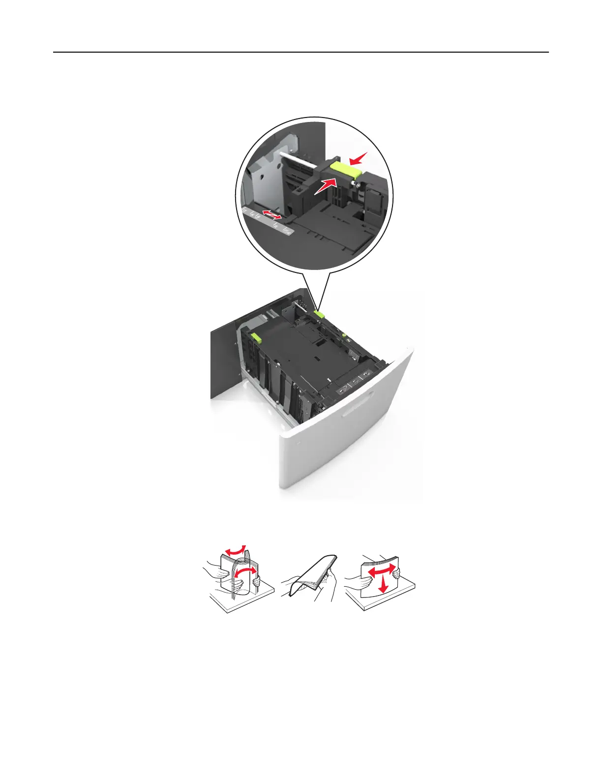 3 Flex sheets of paper back and forth to loosen them, and then fan them. Do not fold or crease the paper.