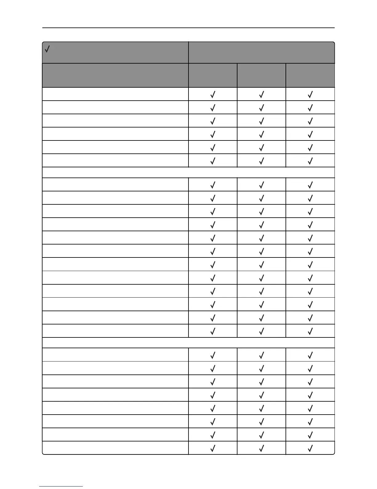 X = Not supported
