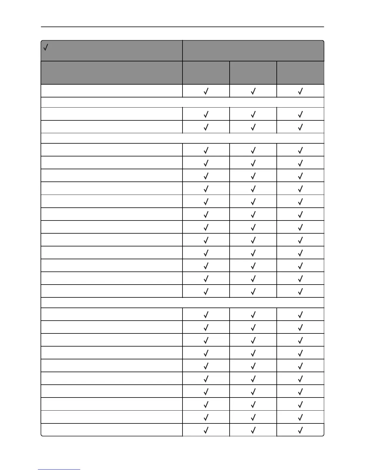 X = Not supported