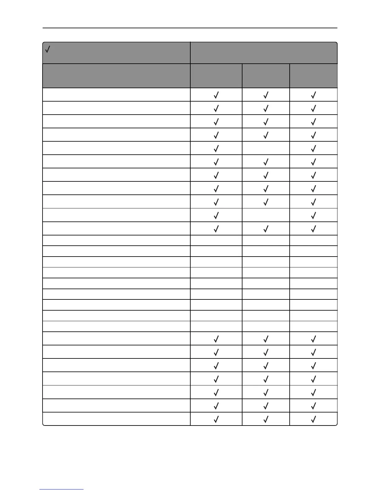 X = Not supported