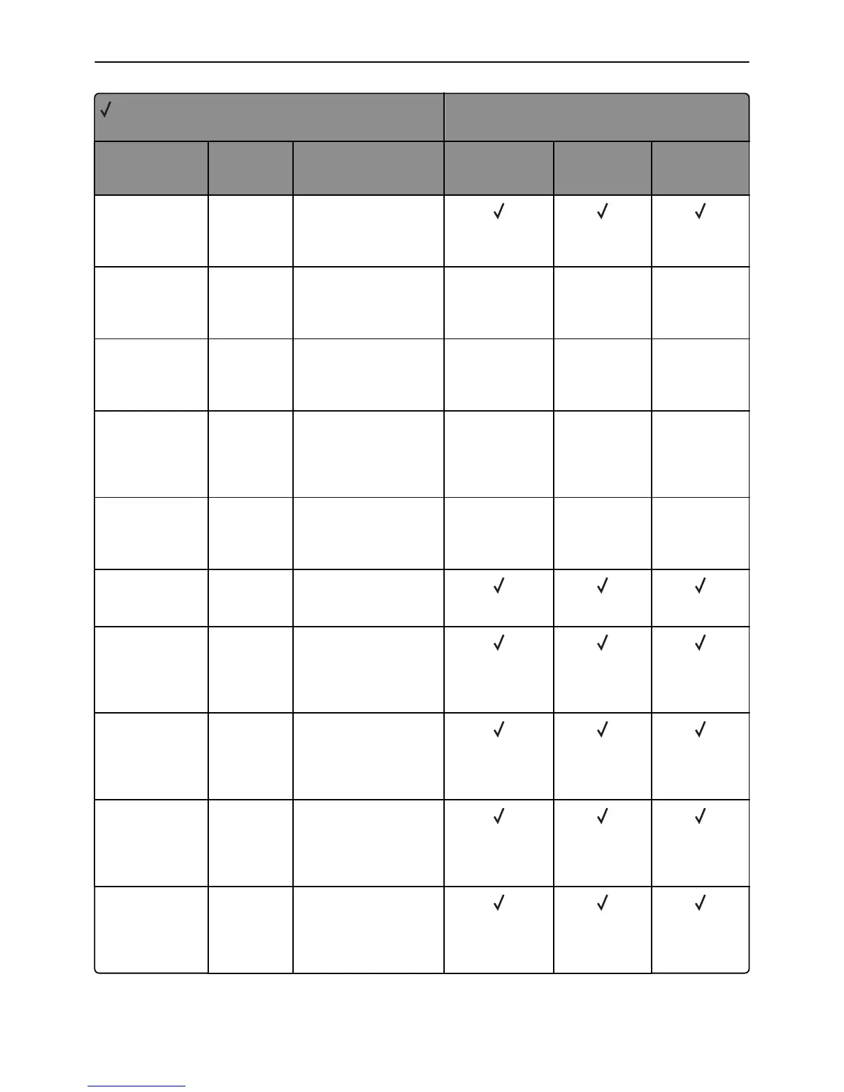 X = Not supported
