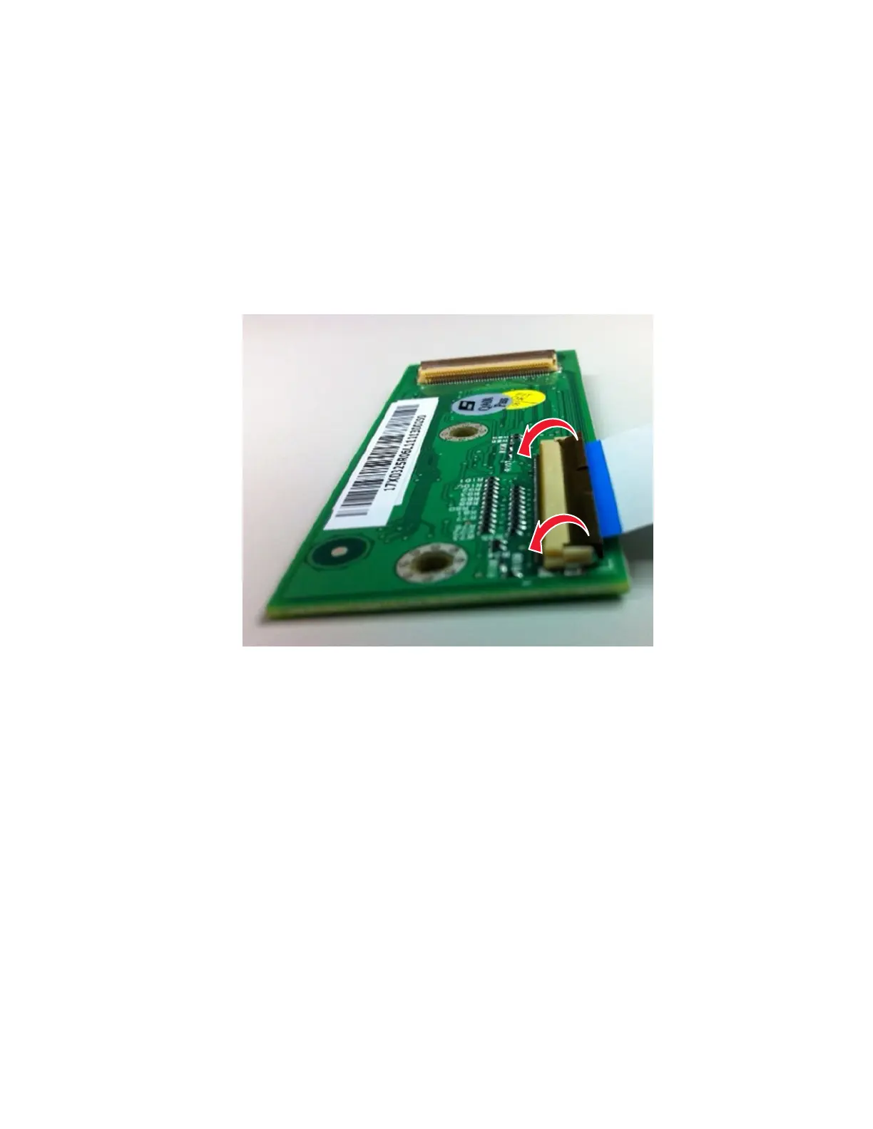 Force (ZIF) connector. The cable is inserted horizontally into the connector.