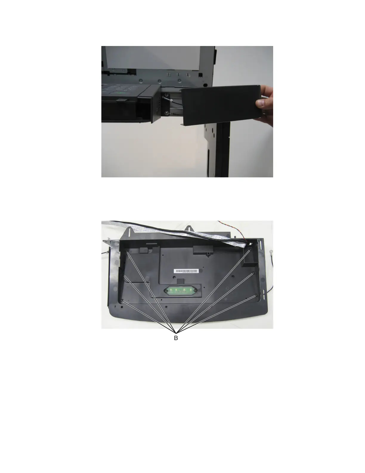 12 Remove the six screws (B) securing the bottom cover to the assembly.