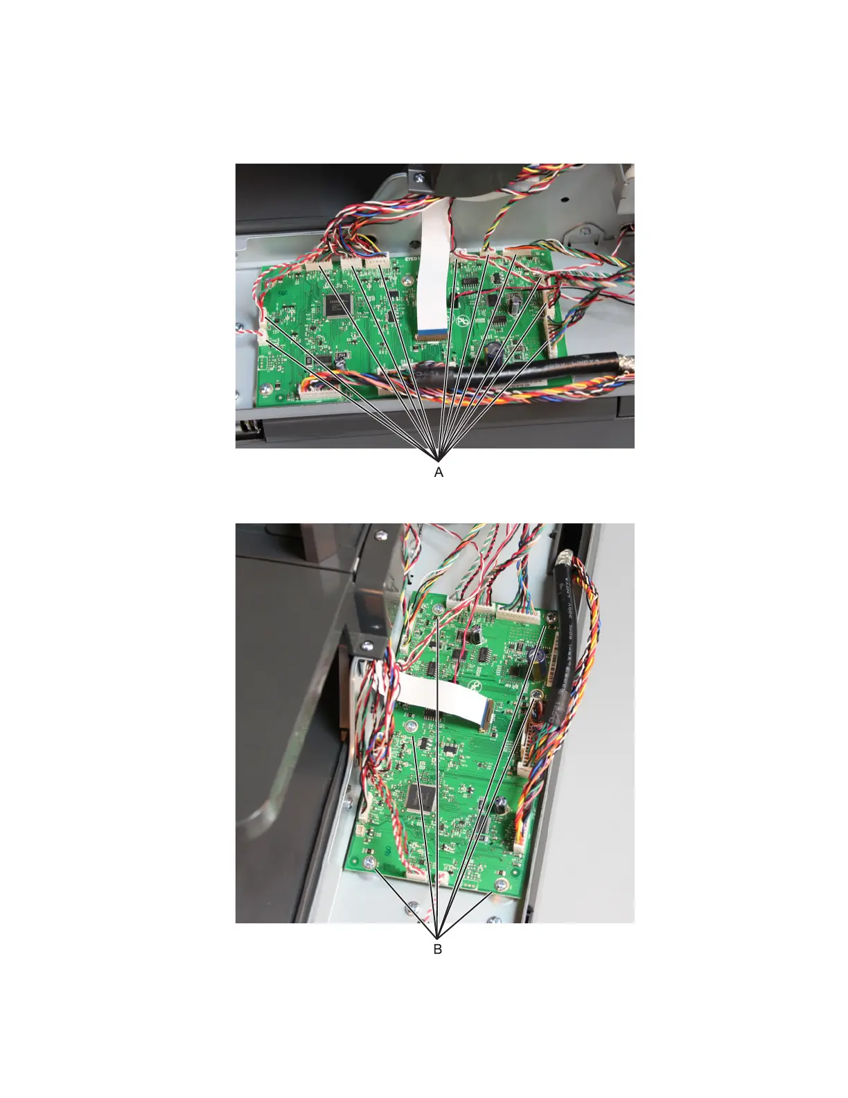3 Remove the six screws (B) securing the ADF controller card, and then remove the ADF controller card.