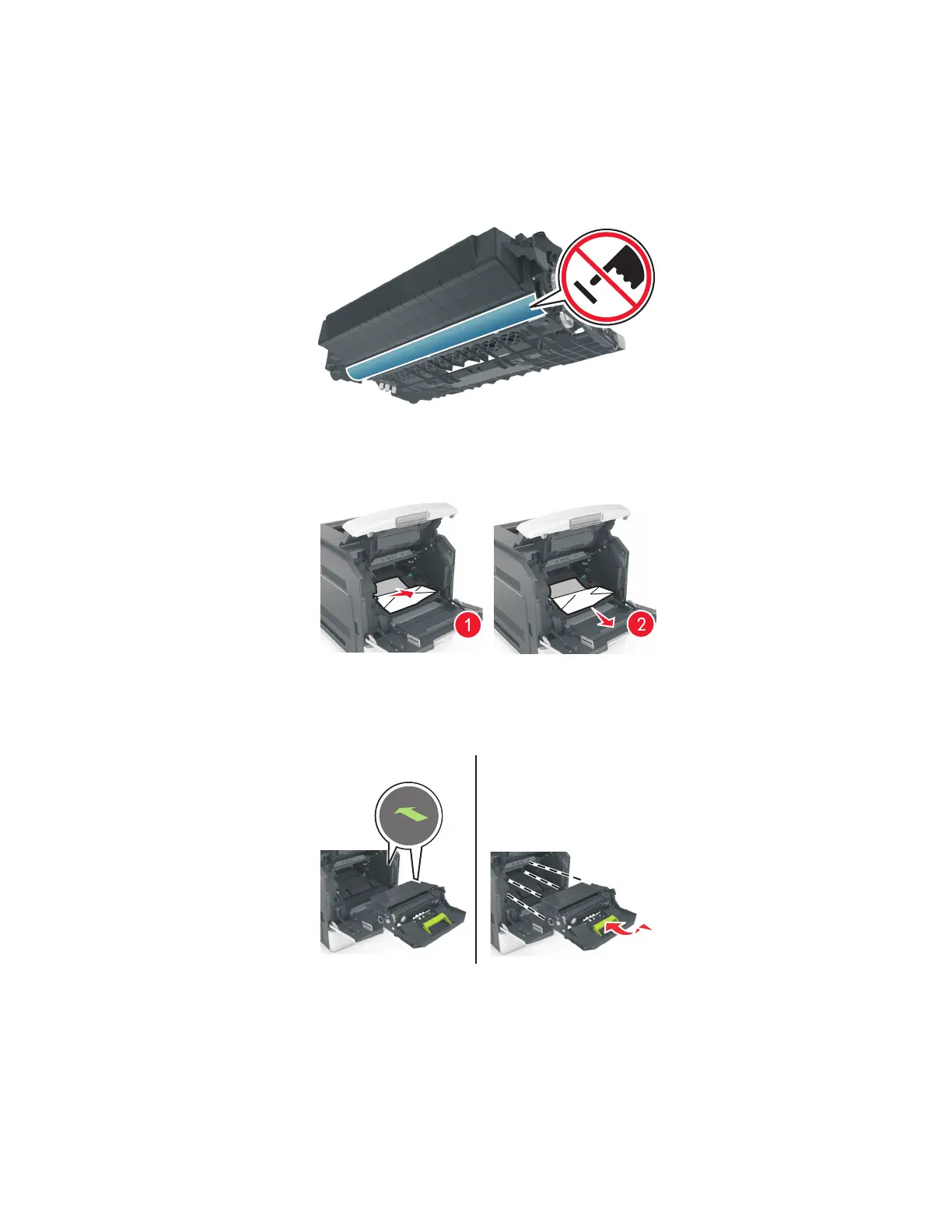 Warning—Potential Damage: Do not touch the photoconductor drum. Doing so may affect the print quality of