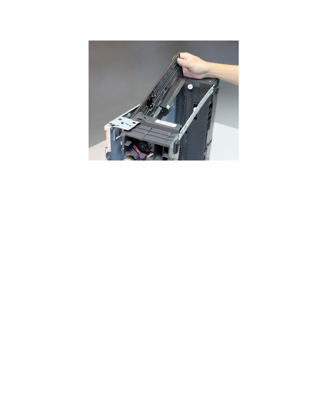 8 To access the cable, lift the left side of the top plate, and pull the sensor assembly away from the drawer.