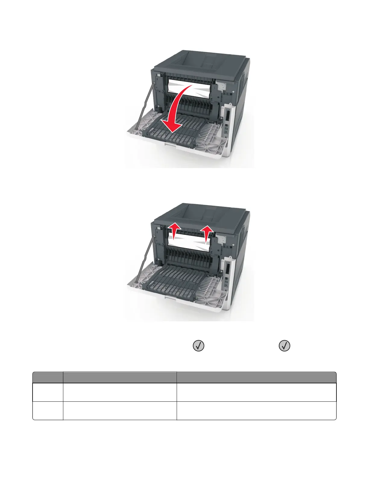 4 To clear the message and continue printing, select Next > > Clear the jam, press OK > .
