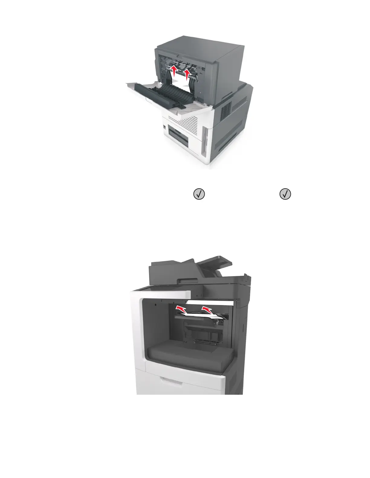 4 To clear the message and continue printing, select Next > > Clear the jam, press OK > .