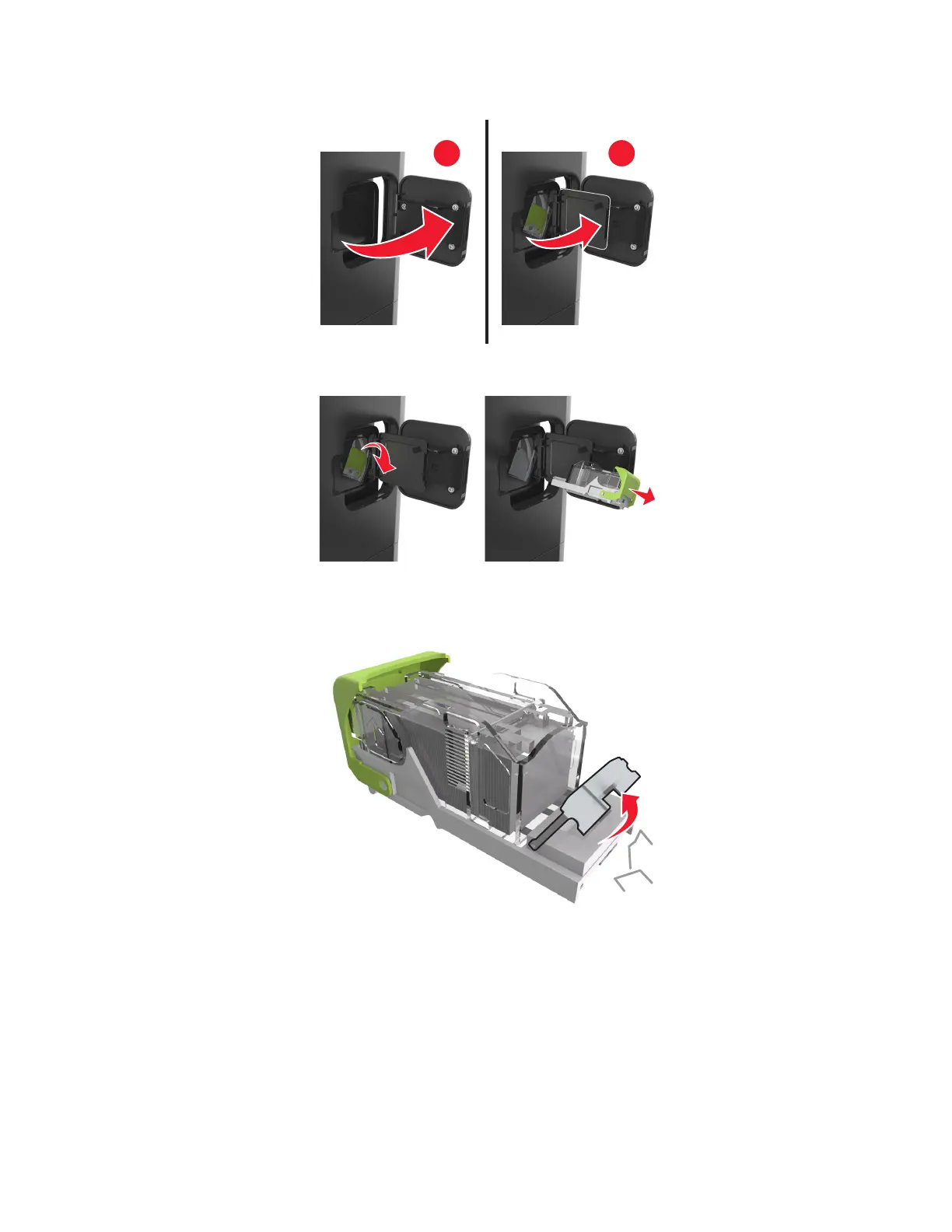 3 Pull down the latch of the staple cartridge holder, and then pull the holder out of the printer.