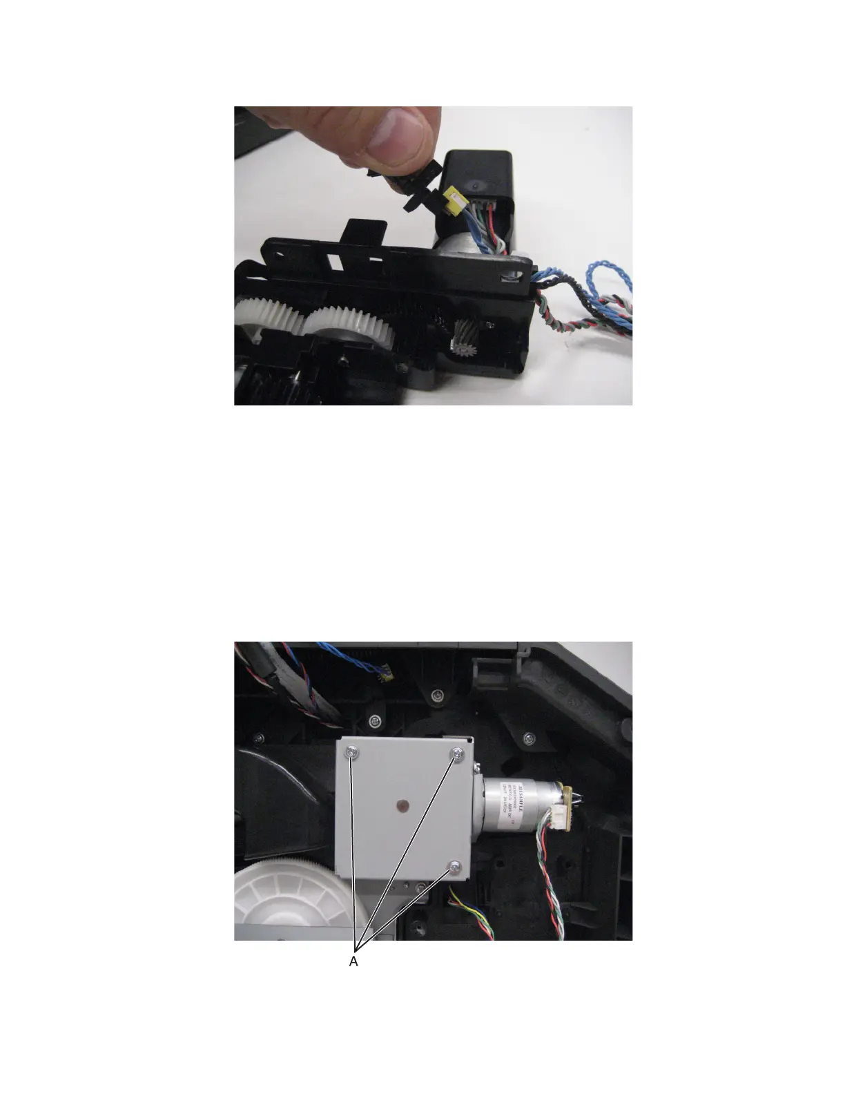 6 Remove the three screws (A) securing the toner add motor to the machine.