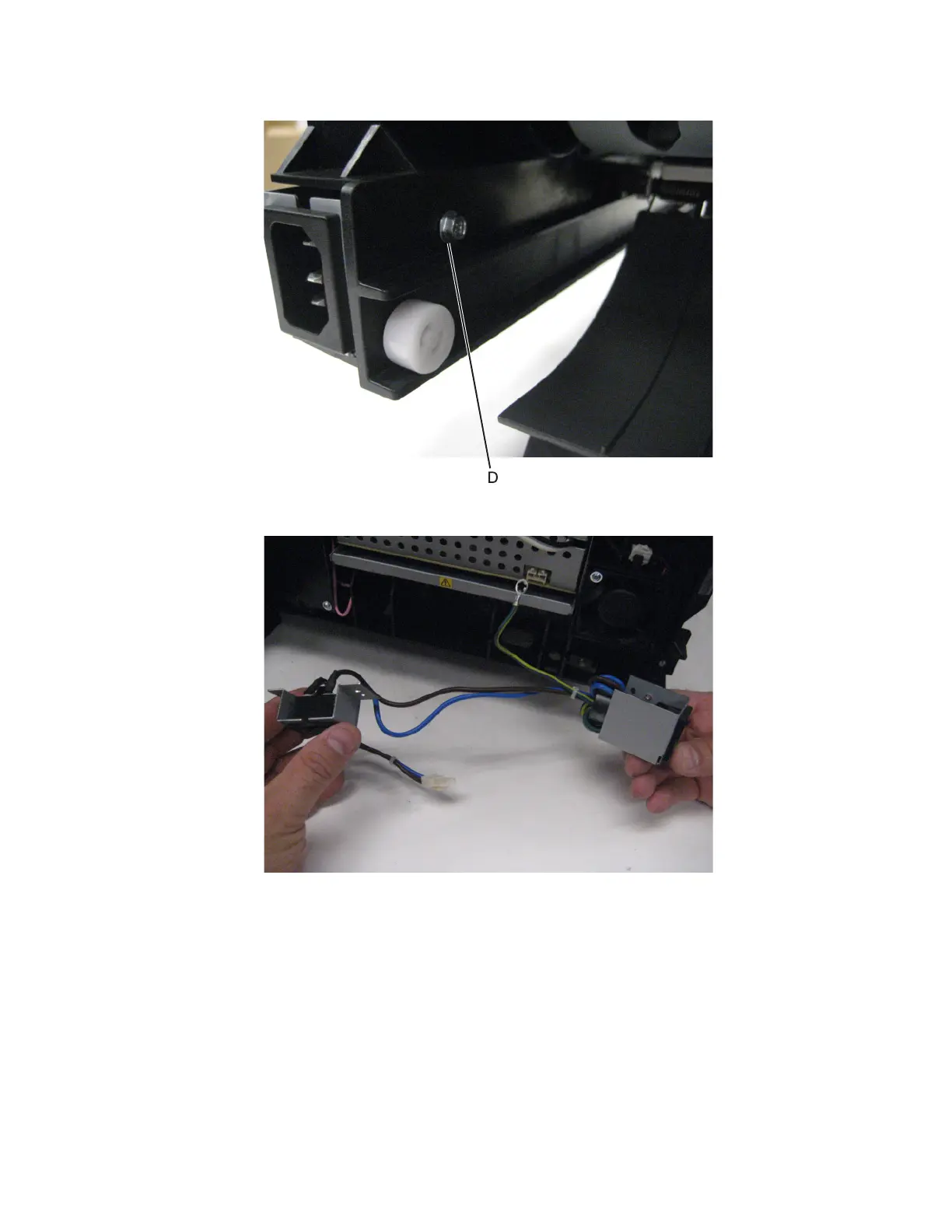 7 Remove the screw (D) securing the bracket to the machine.
