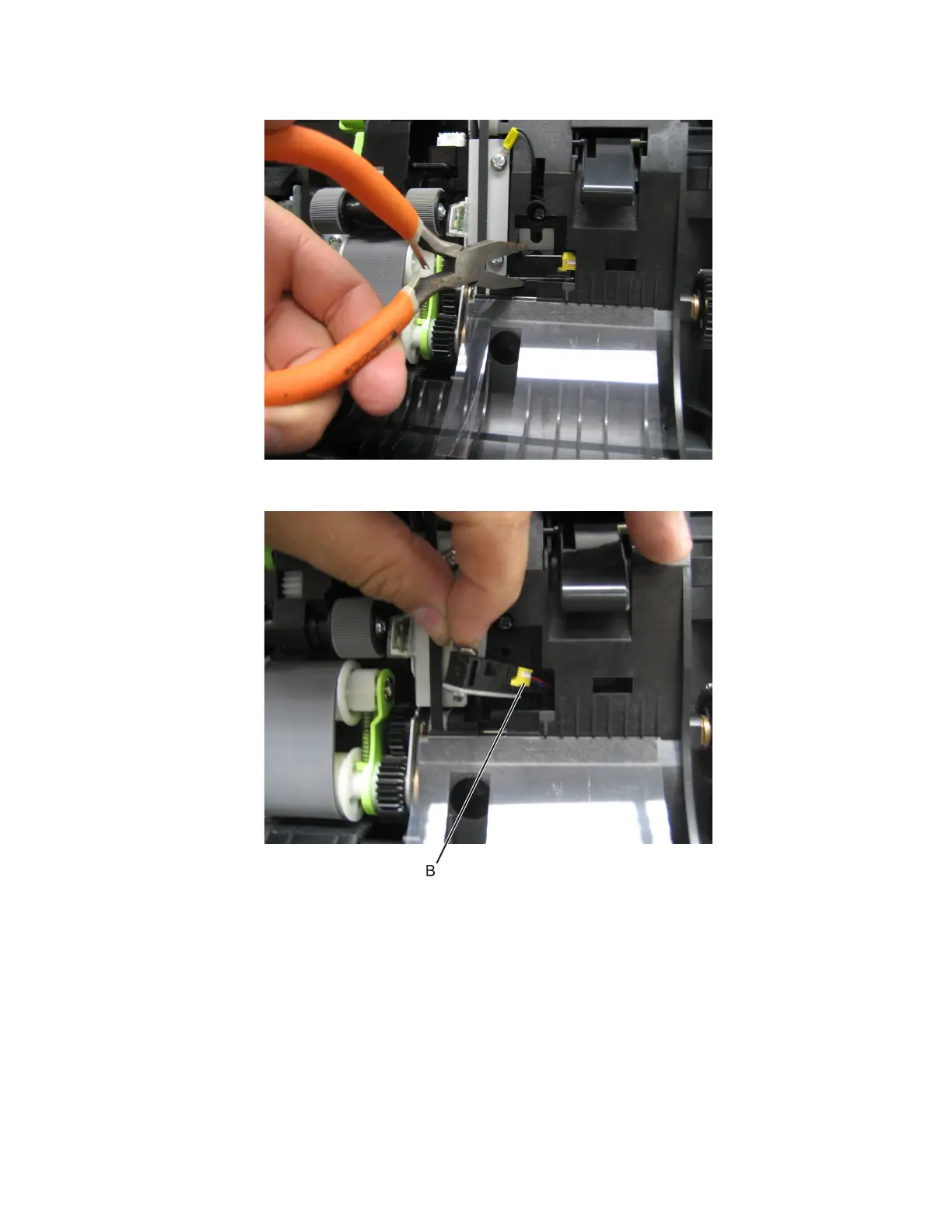 2 Remove the ADF rear cover. See “ADF rear cover removal” on page 470.