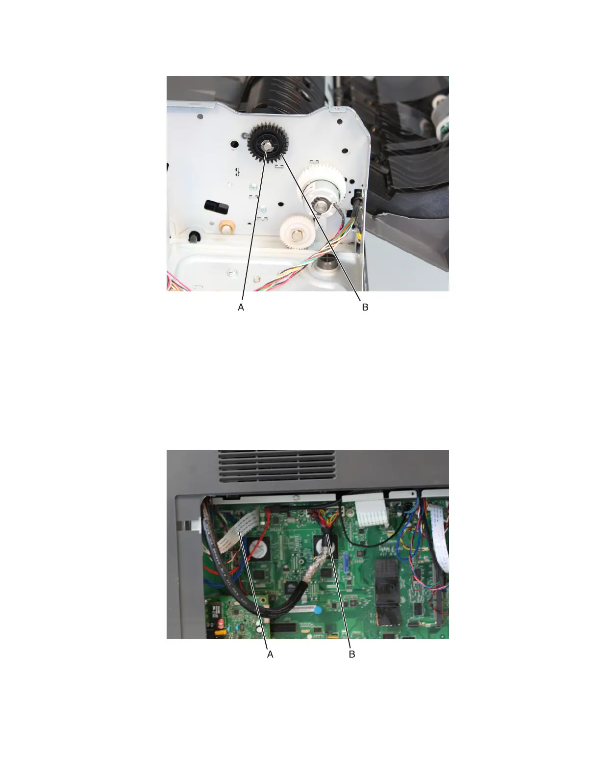 3 Remove the J51 cable (A) and JADF1 cable (B) from the controller board.