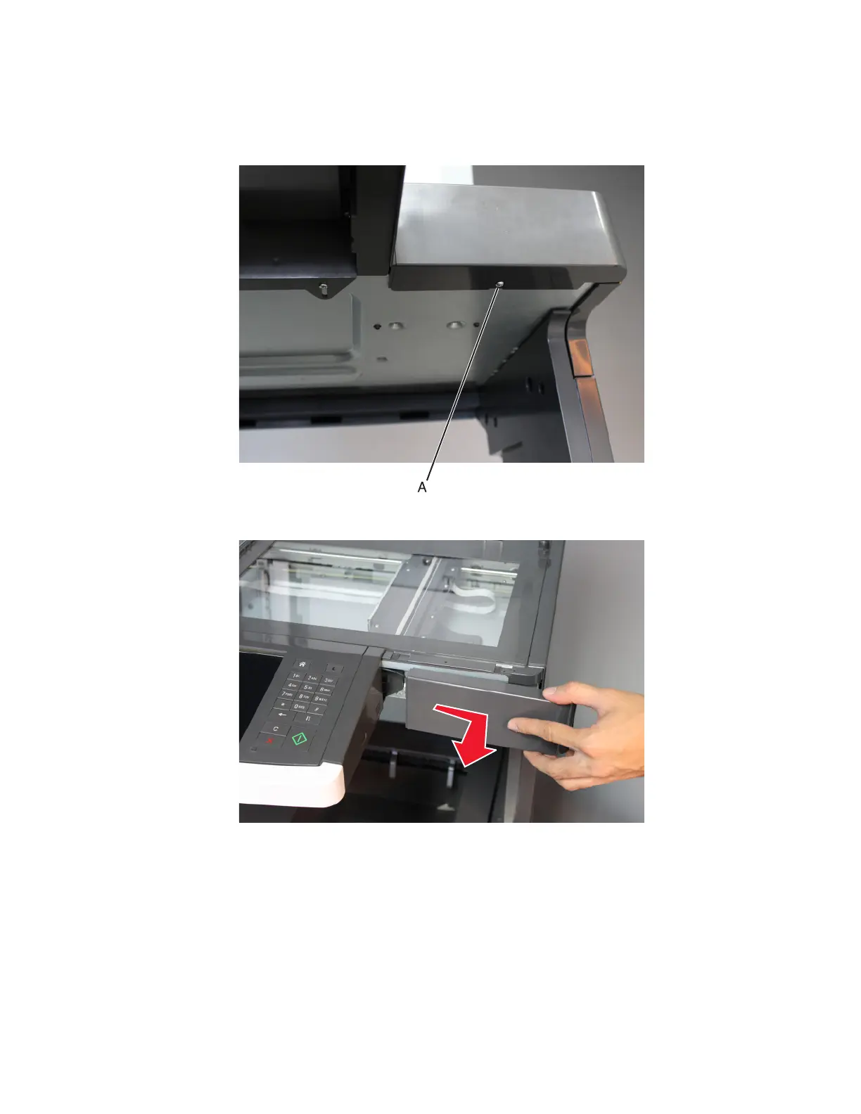 Flatbed scanner front cover removal (MX81x)