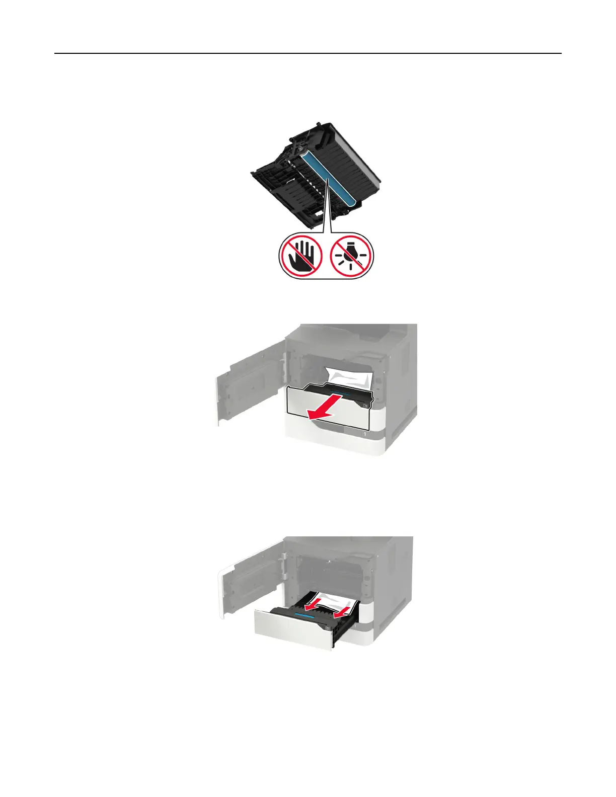 Warning—Potential Damage: Do not touch the photoconductor drum. Doing so may aect the quality of