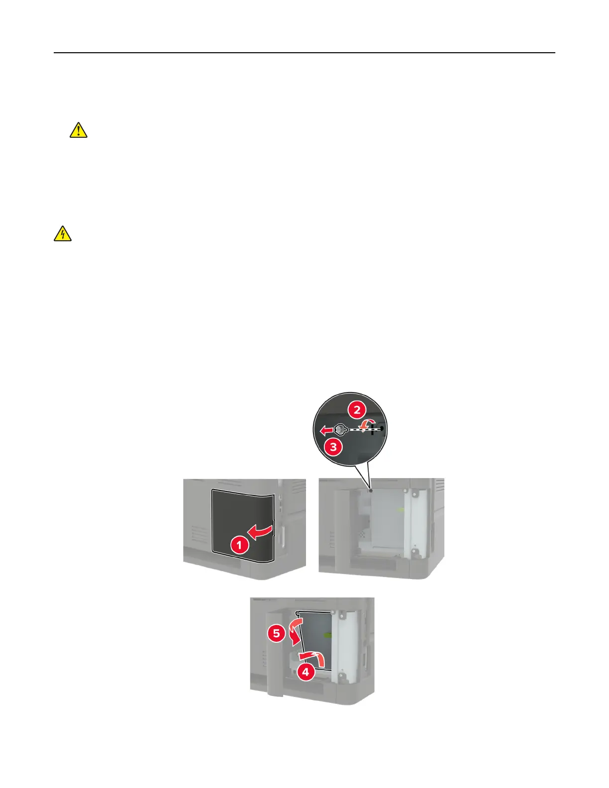 board or installing optional hardware or memory devices sometime after setting up the printer, then turn
