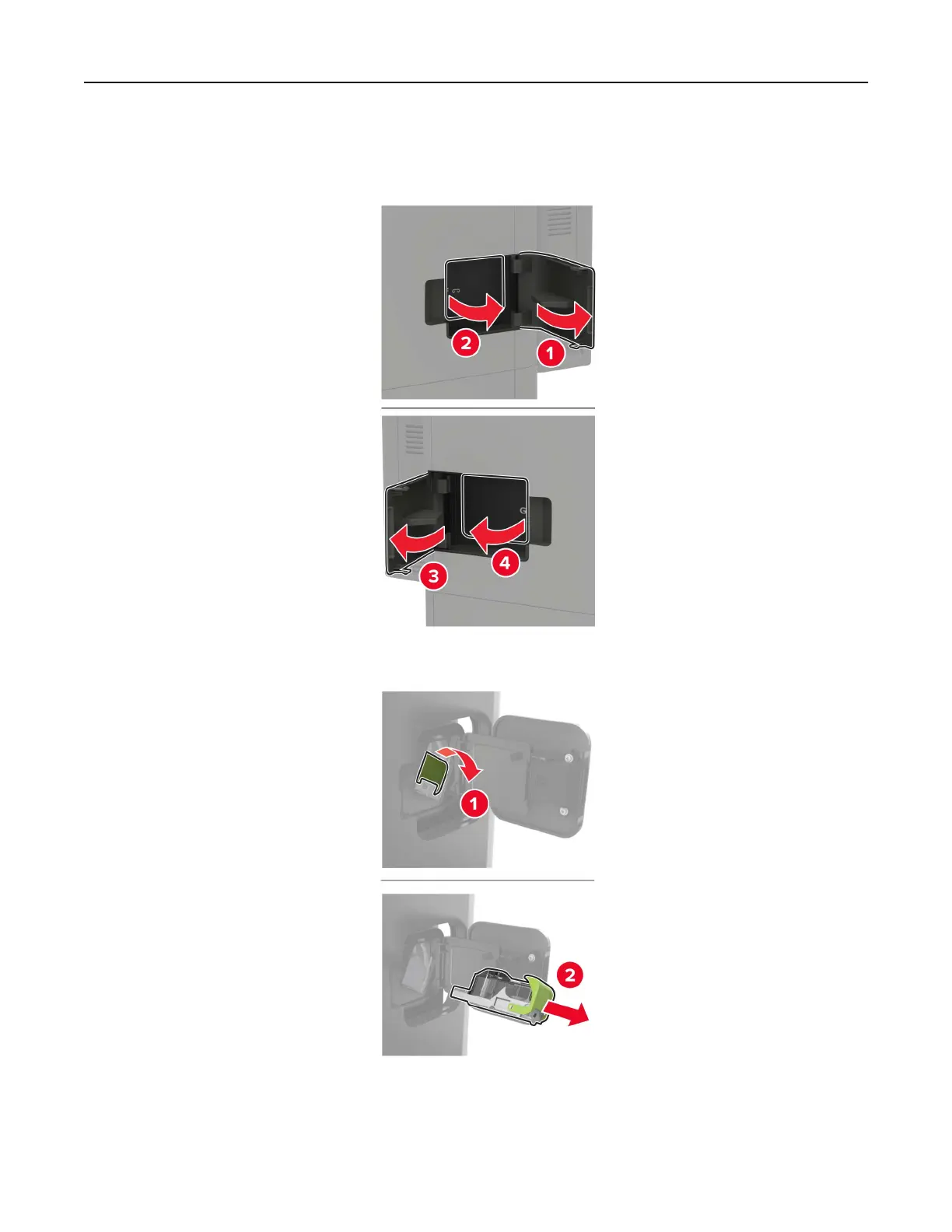1 Depending on the staple cartridge to replace, open either door F or door G.