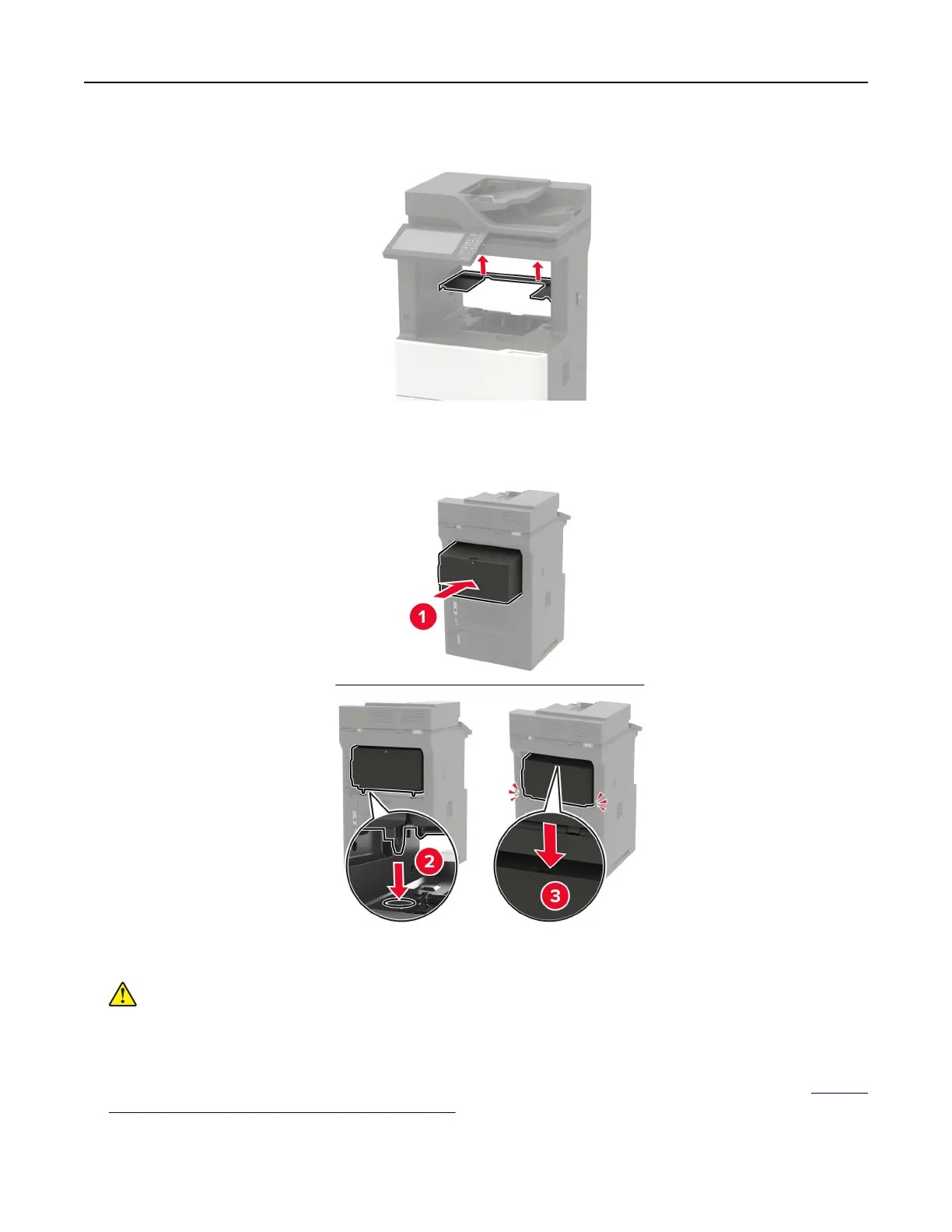 5 Install the staple finisher to the printer, and then push it down to make sure that it is securely attached to