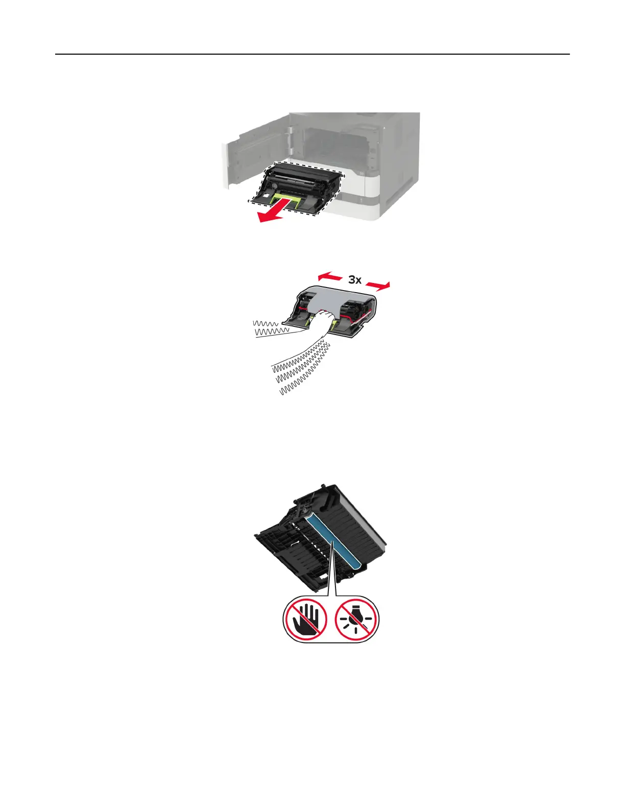 Warning—Potential Damage: Do not touch the photoconductor drum. Doing so may