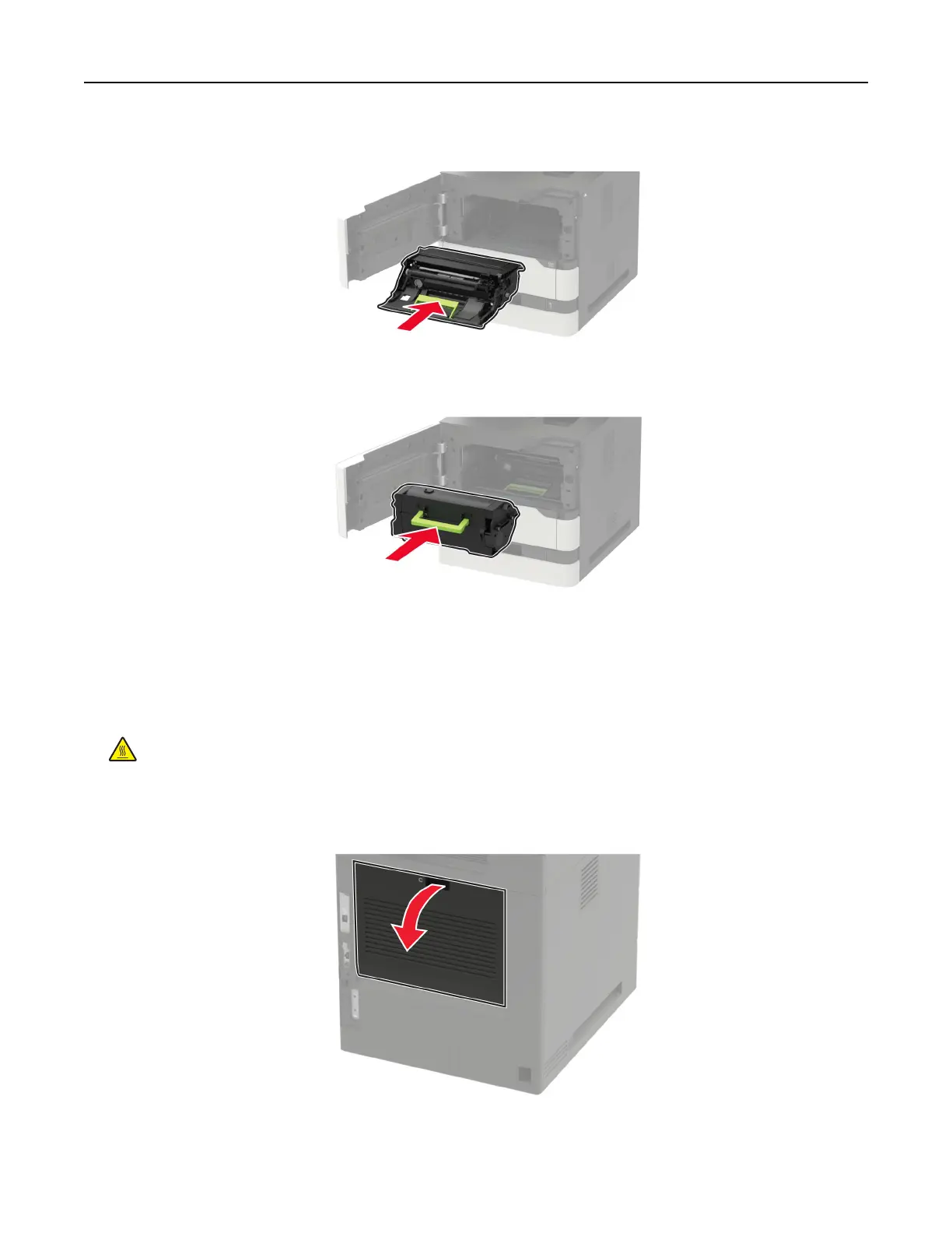 CAUTION—HOT SURFACE: The inside of the printer might be hot. To reduce the risk of injury from a