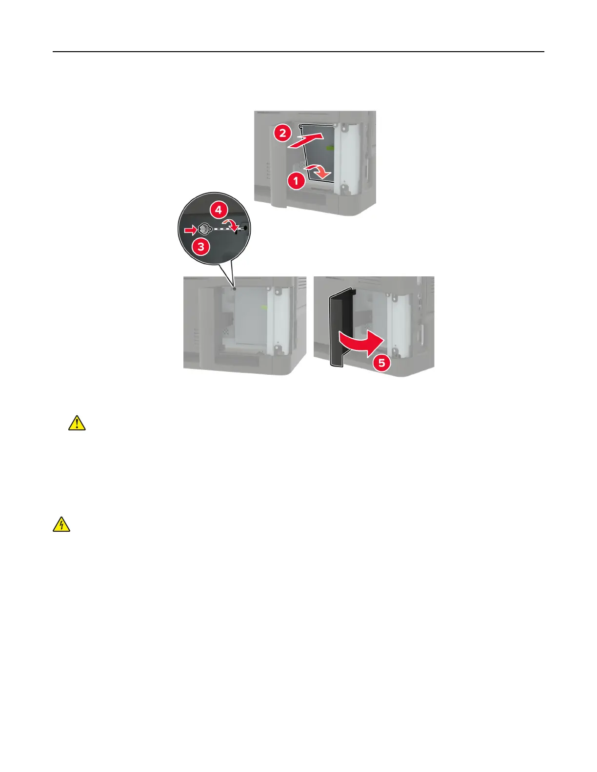 board or installing optional hardware or memory devices sometime after setting up the printer, then turn