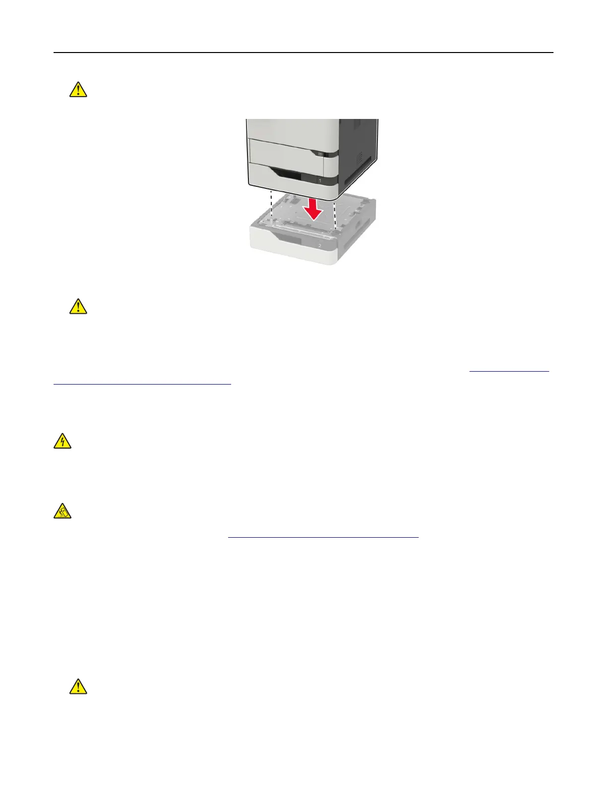 CAUTION—TIPPING HAZARD: Installing one or more options on your printer or MFP may require a