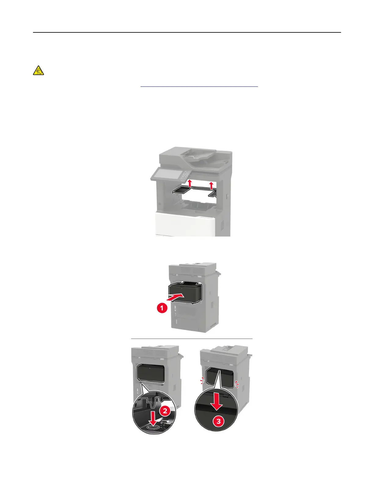 CAUTION—TIPPING HAZARD: Installing one or more options on your printer or MFP may require a