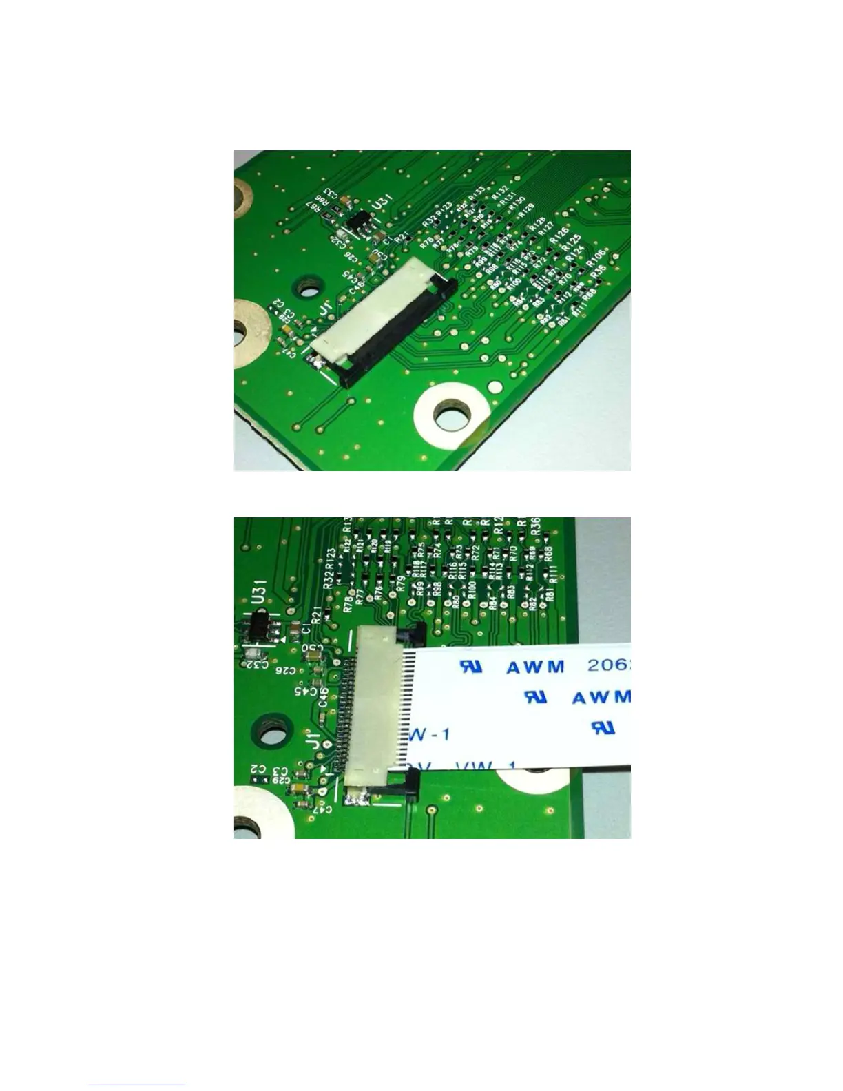 2 Insert the cable on top of the actuator with the contacts facing away from the locking actuator.