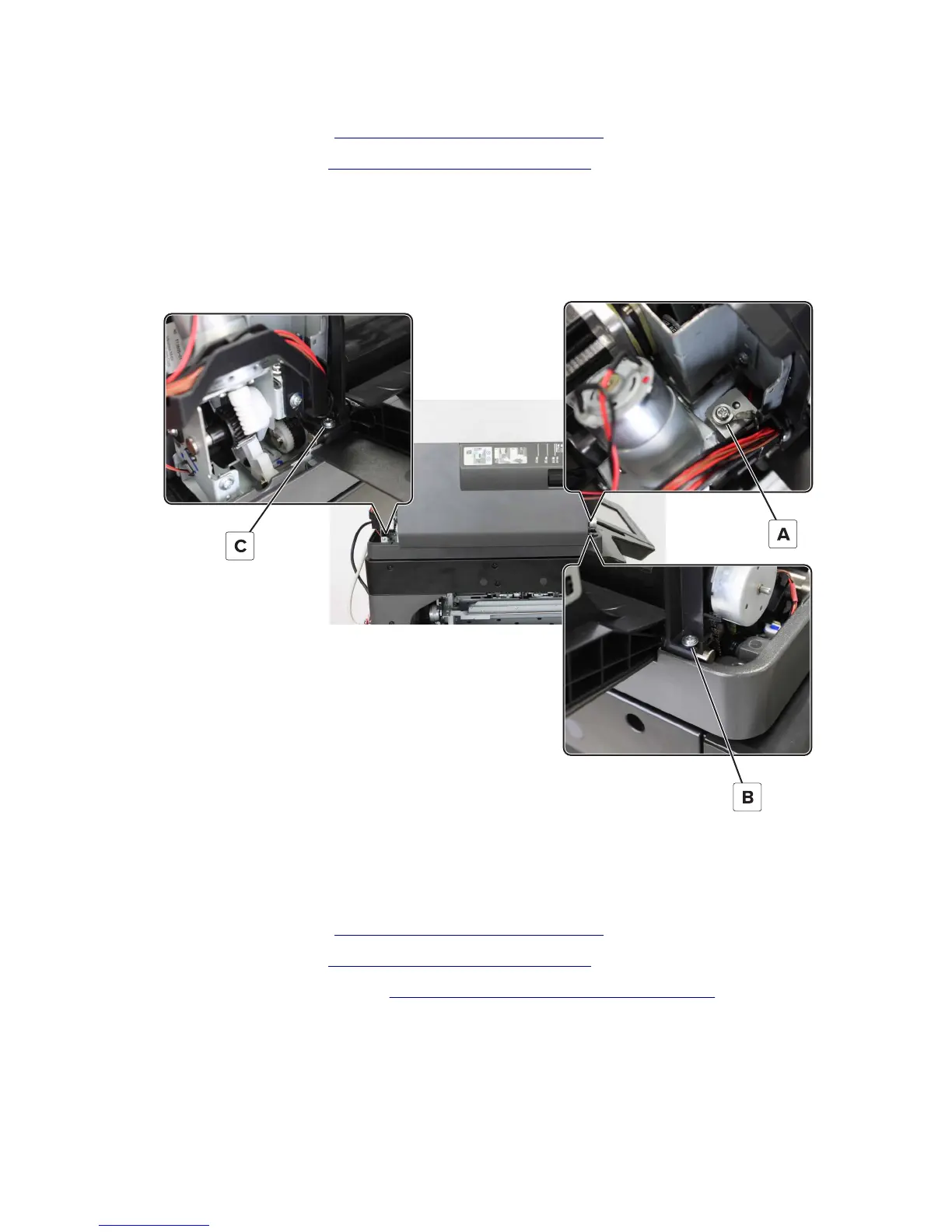 2 Remove the ADF rear cover. See “ADF rear cover removal” on page 410.