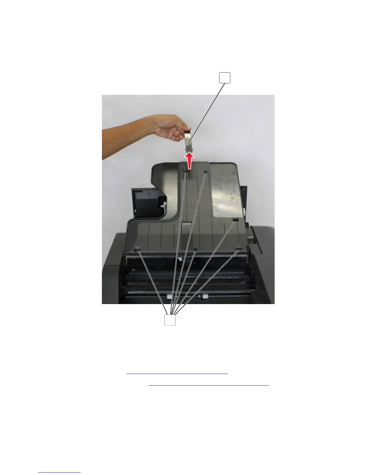 1 Remove the ADF rear cover. See “ADF rear cover removal” on page 410.