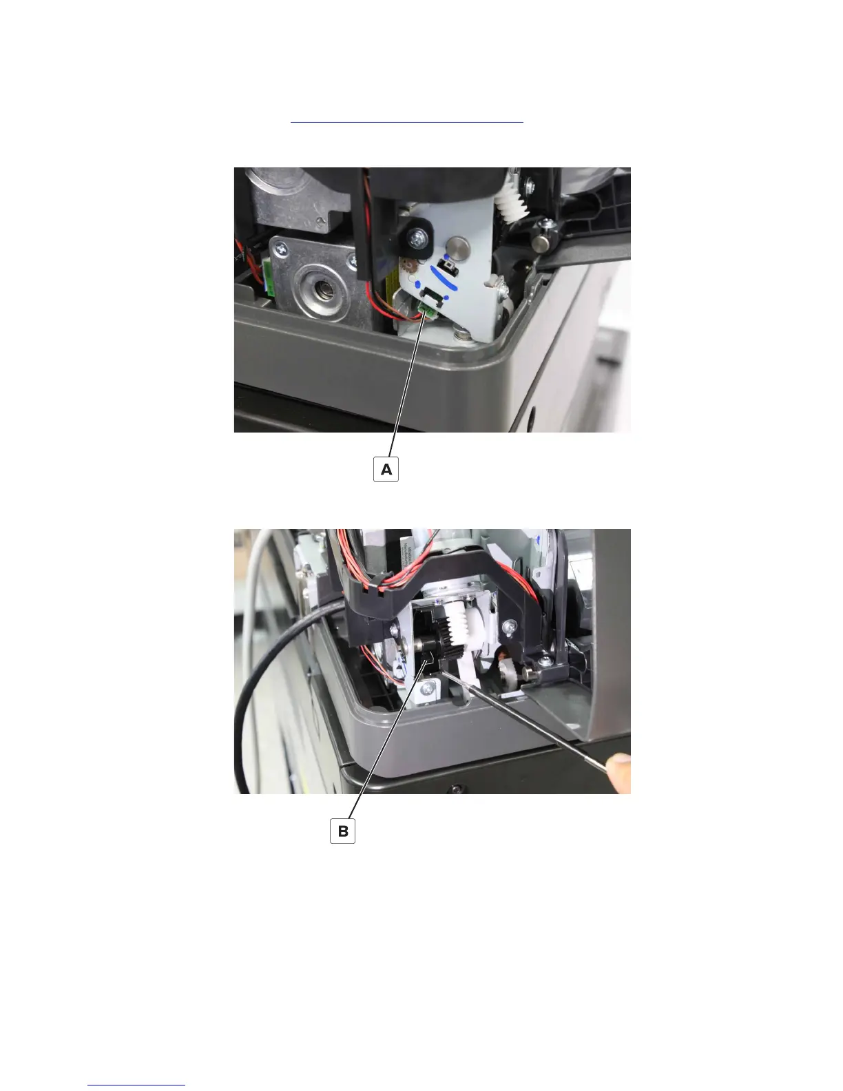 3 Rotate the gear until the sensor (B) is unblocked, and then remove the sensor.