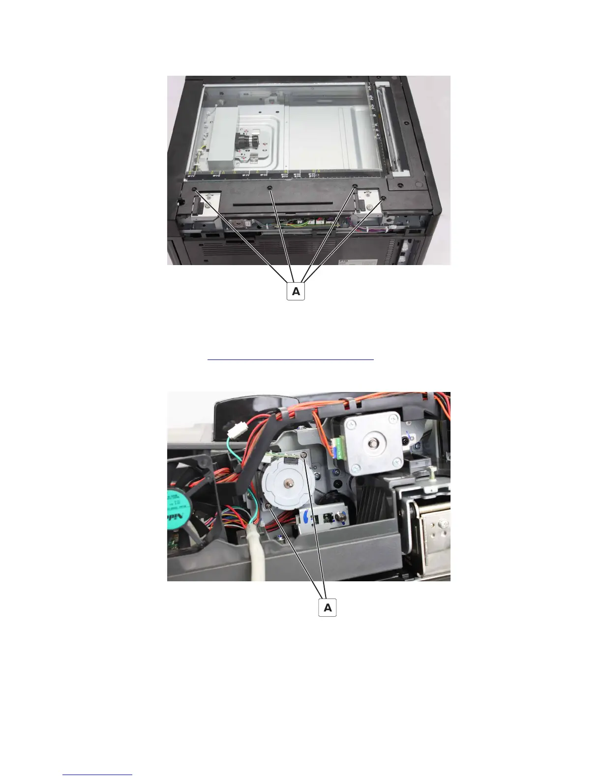 3 Remove the four screws (A), and then remove the scanner top cover.