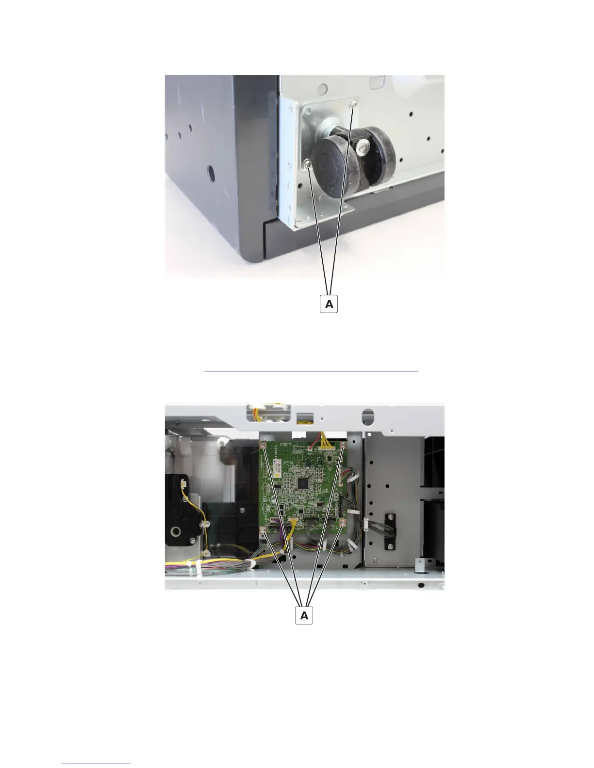 3 Remove the two screws (A), and then remove the caster.