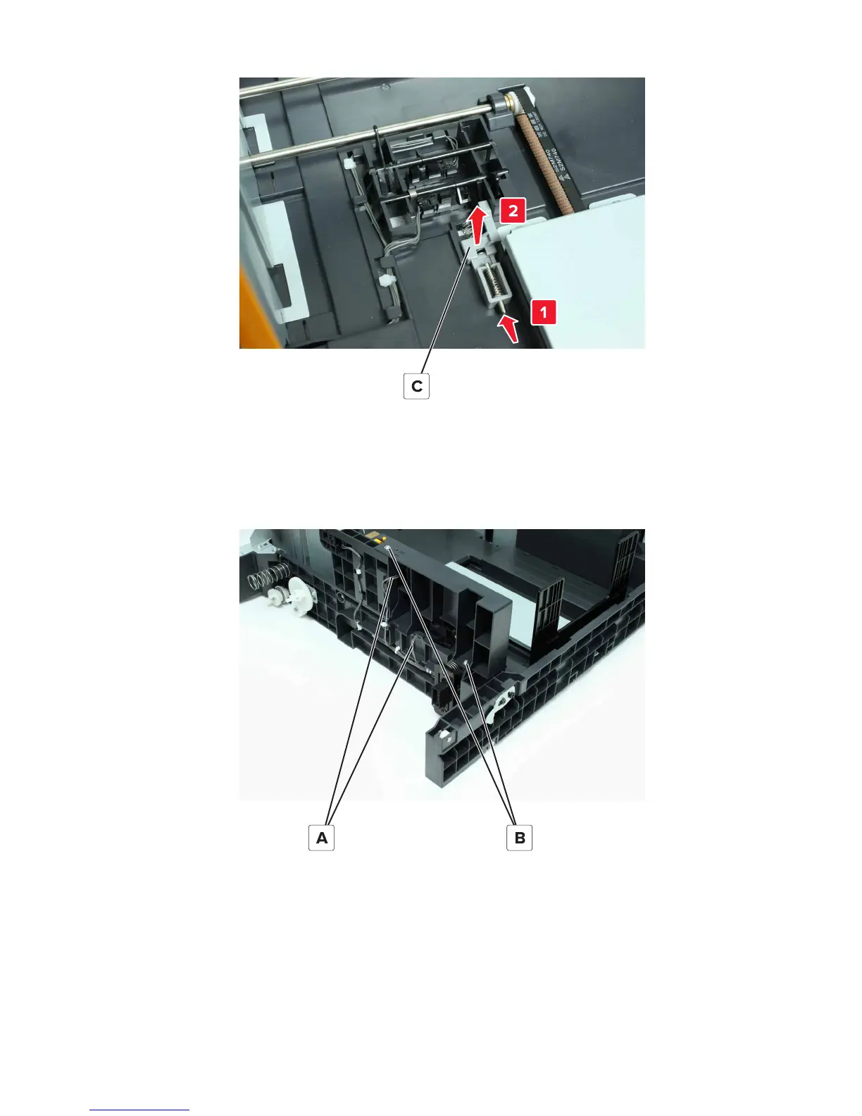 Lexmark MX910de - 2500-Sheet Reserve Tray Paper Limit Sensor Actuator Removal
