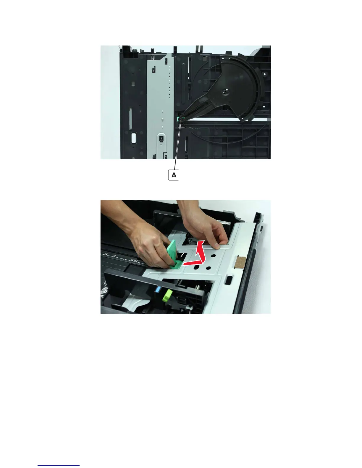 4 Raise the lift plate, move the length guide slightly under the lift plate, and then remove the guide.